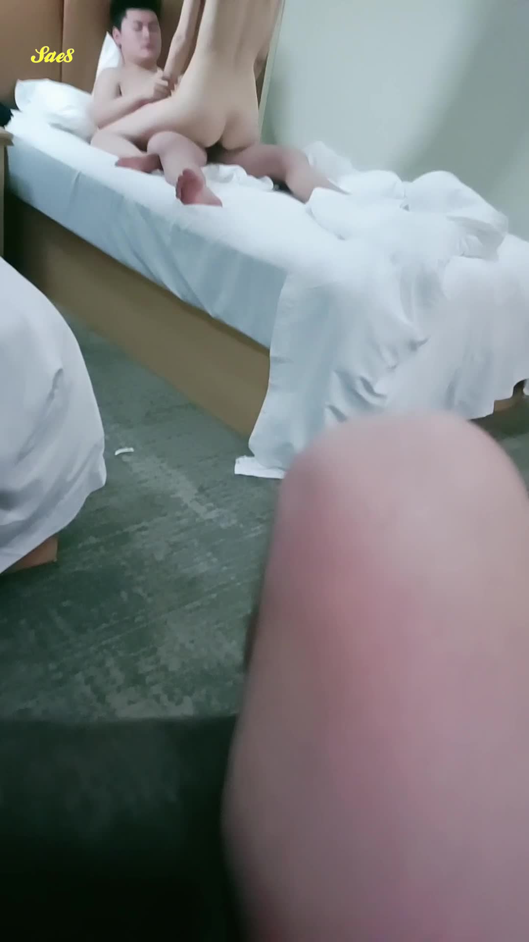 鬼火少年躲在酒店窗帘后偷拍好哥们干炮